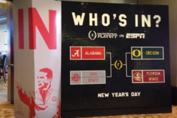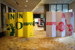 Post No Bills was honored to be selected by Eli Marketing to elevate a selected cavernous space into a VIP experience. ESPN launched its new corporate initiative for college football. Using environmental décor to create an unforgettable experience for the client, Post No Bills combined innovative execution and one-of-a-kind merchandise for college football’s “Who’s In” campaign. We are honored to be supporting clients as they build out their high-profile events across the country.