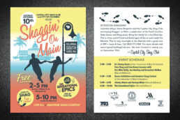 The Capital City Shag Club and Mayor Steve Benjamin teamed up with Post No Bills to create the marketing materials for their “Shaggin’ on Main” event in downtown Columbia. Committed to helping this local event gain the credibility it desired and the look of a national affair, our team developed high end materials on a limited community budget. Our attention to detail captured the minds and hearts of the community as they gathered to celebrate the state dance in a new and memorable way.